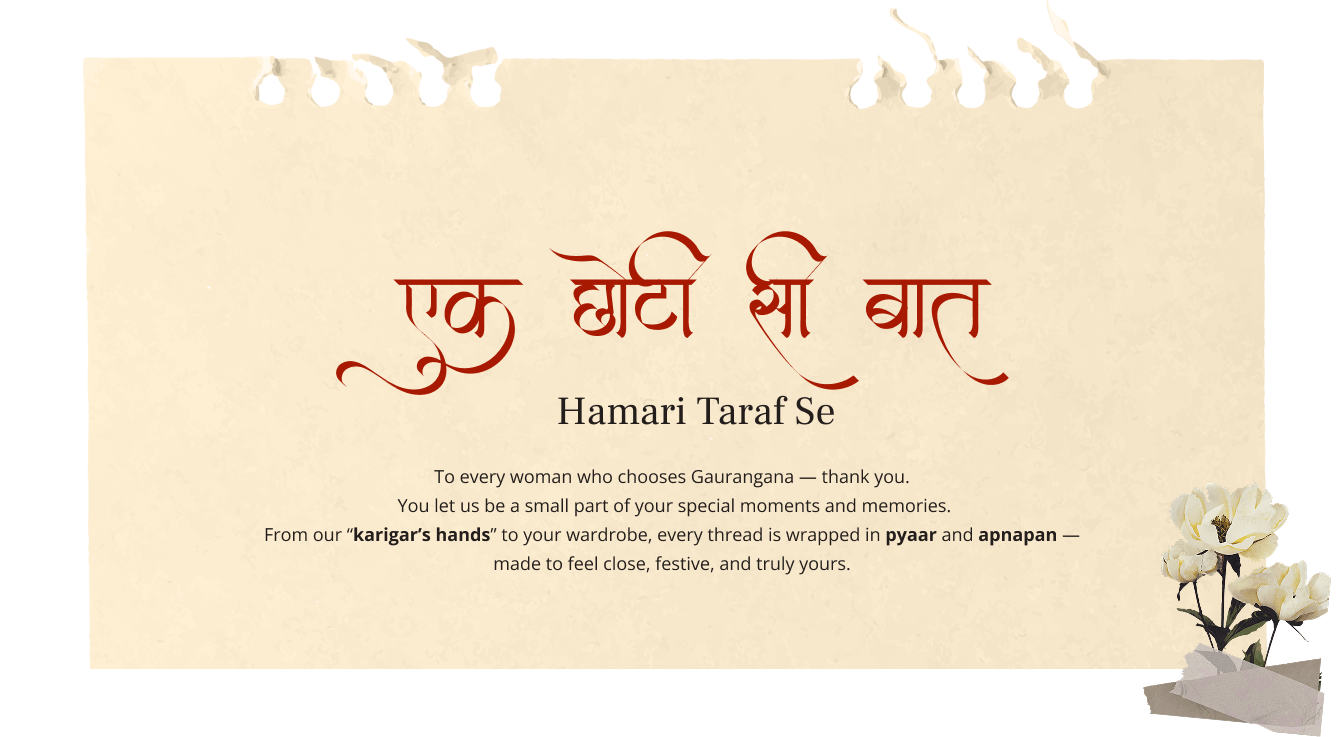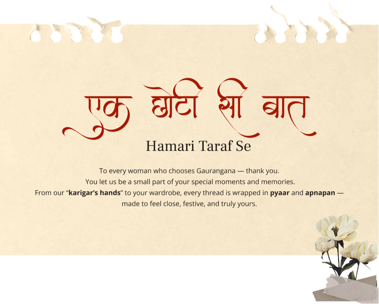 From wedding trousseau boxes to festive sets, every Gaurangana outfit is packed with care and love.
